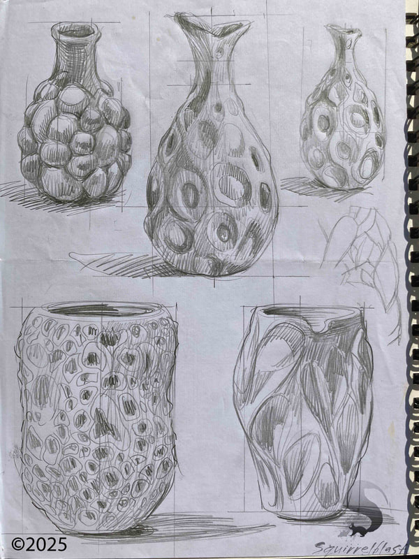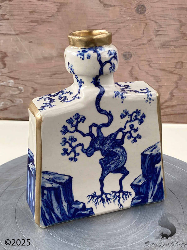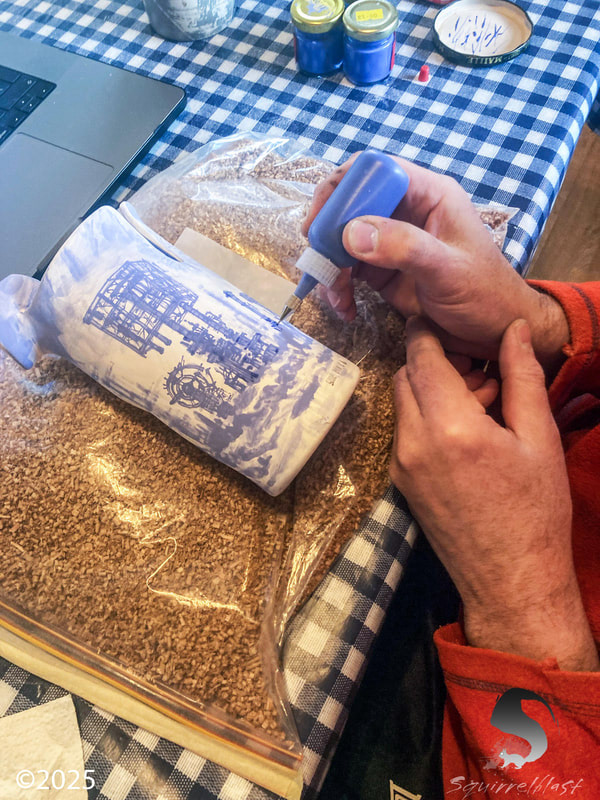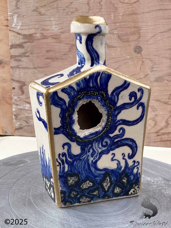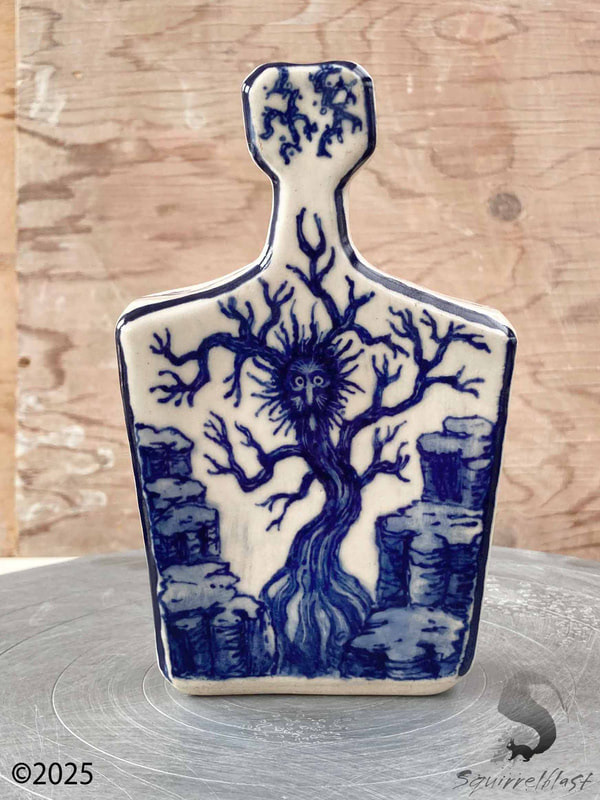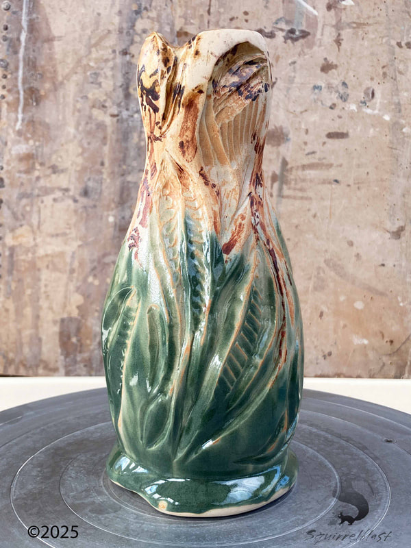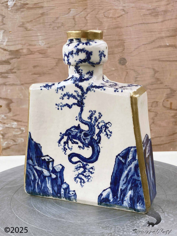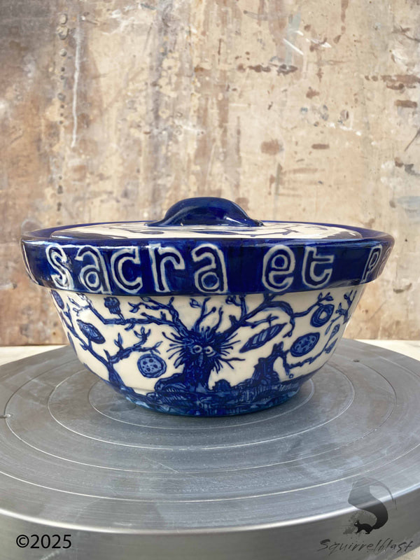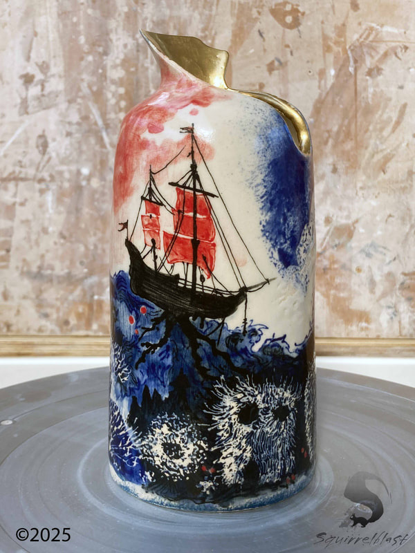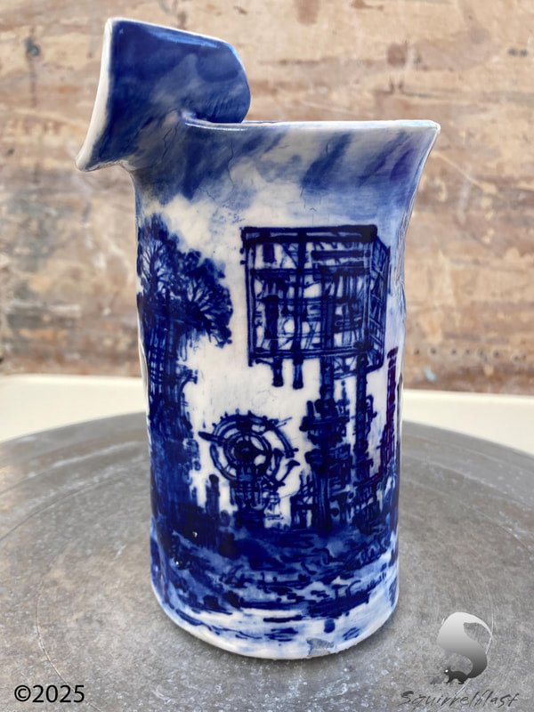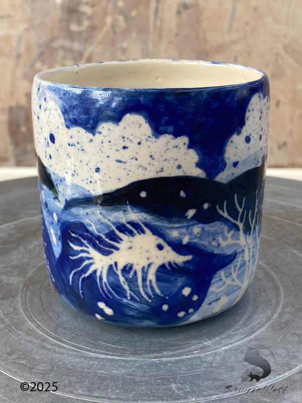 When the clay is 'leather hard' trimming and adding details on the greenware is a long and time consuming activity. Brushing underglazes on bisque fired pots is another tricky one. Applied colours are instantaneously sucked into the fired clay. The technique is completely different from painting on canvas or paper. Brush marks are pretty short , contrast has to be imagined as the darkest tones are very pale before the 'glaze firing' stage. Liquid glaze colours do not match the final fired glazes, therefore there is no margin for error.