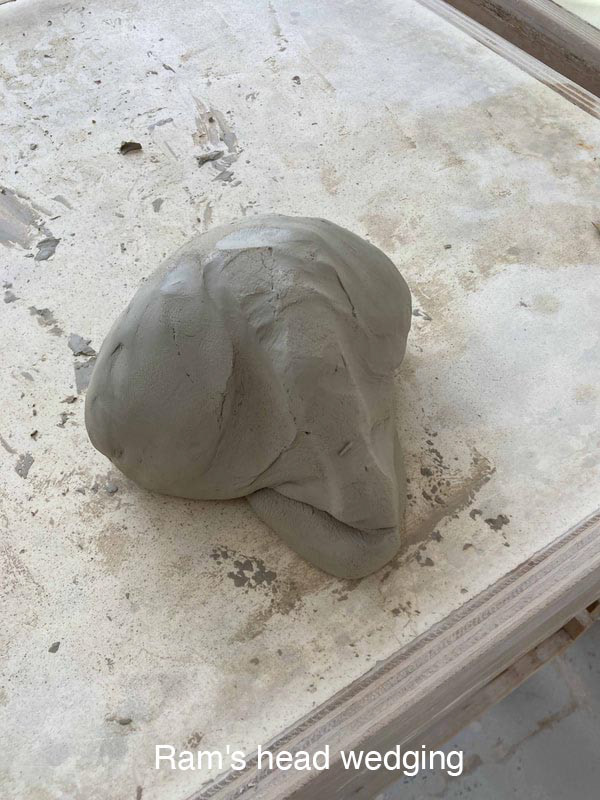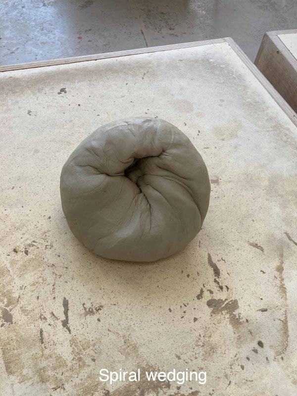 The clay is moved in a repetitive way to help remove air bubbles and even out the consistency.
