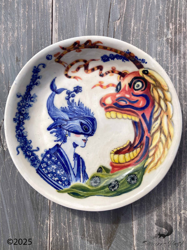 I was inspired by traditional Chinese cobalt blue decor and modern Japanese Manga style themes.