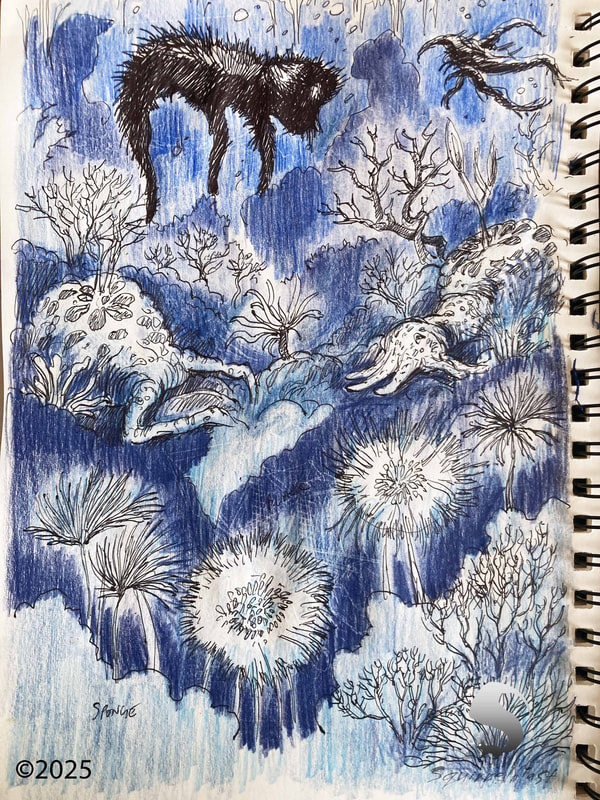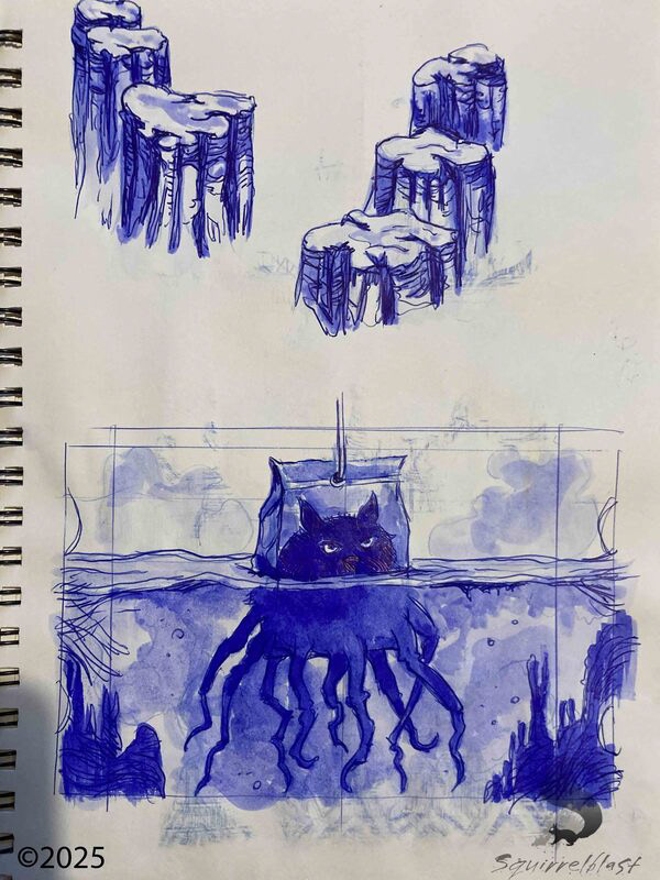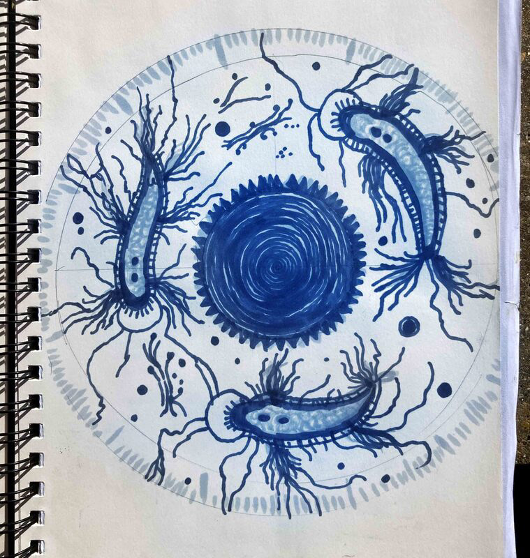 A curious shift from a Wacom stylus to drawing with a plastic bottle with a fine tip.